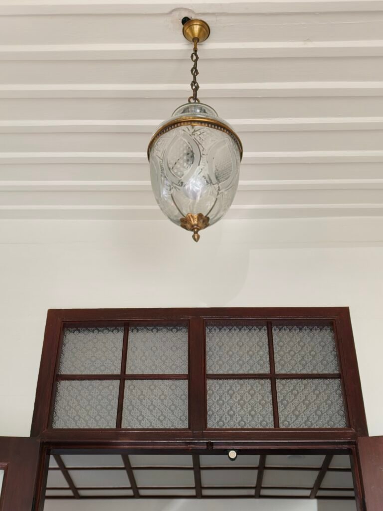 ดูงานโคมไฟโบสถ์และโคมไฟวัดทองเหลืองใกล้ๆ. ตรวจสอบรายละเอียดการแกะสลักและชุบสี.