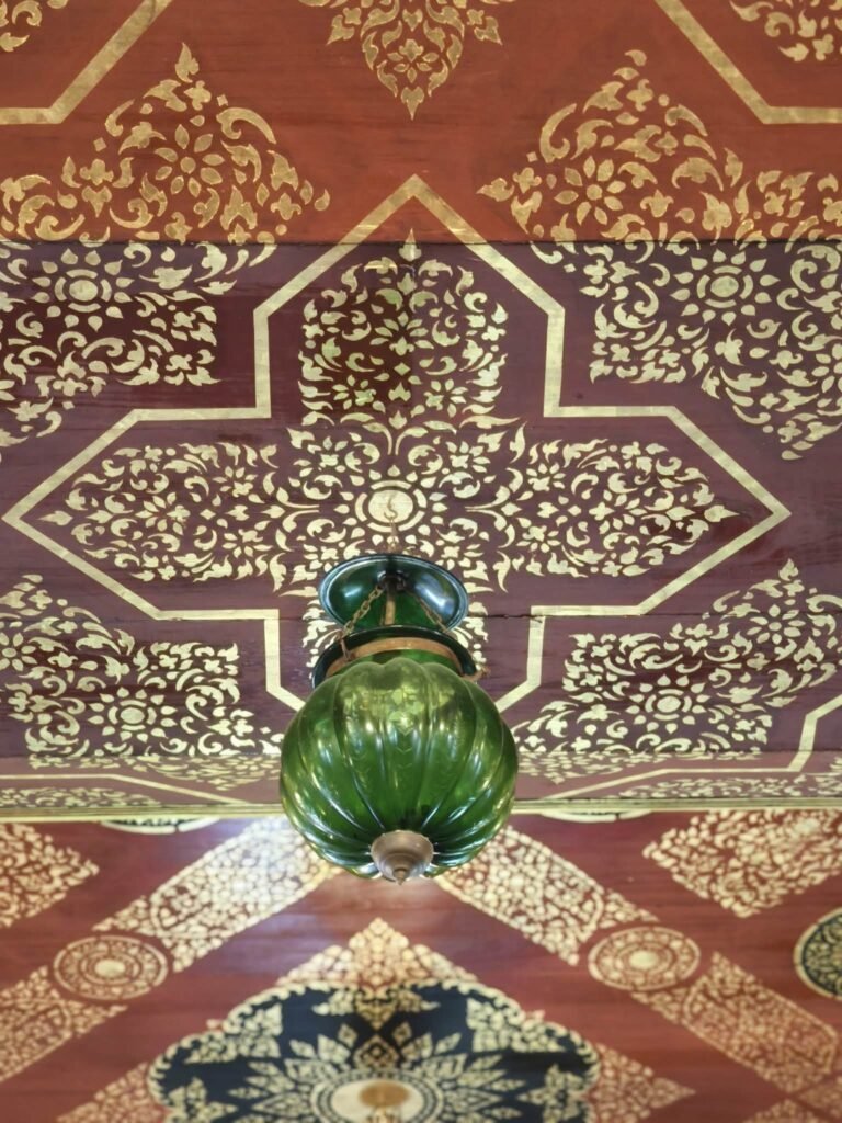 - โคมไฟติดพนังในวัดควรเลือกวัสดุและลวดลายให้สอดคล้องกับสถาปัตยกรรม
